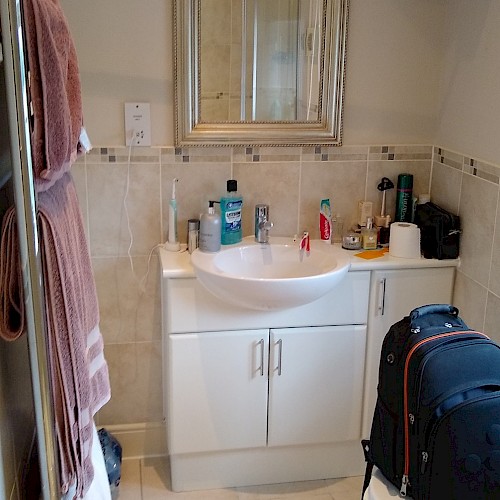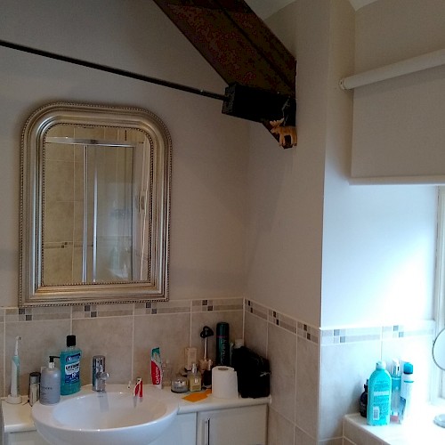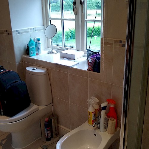 The brief here was to update the rather dated 1990s master en suite in a converted stable block.